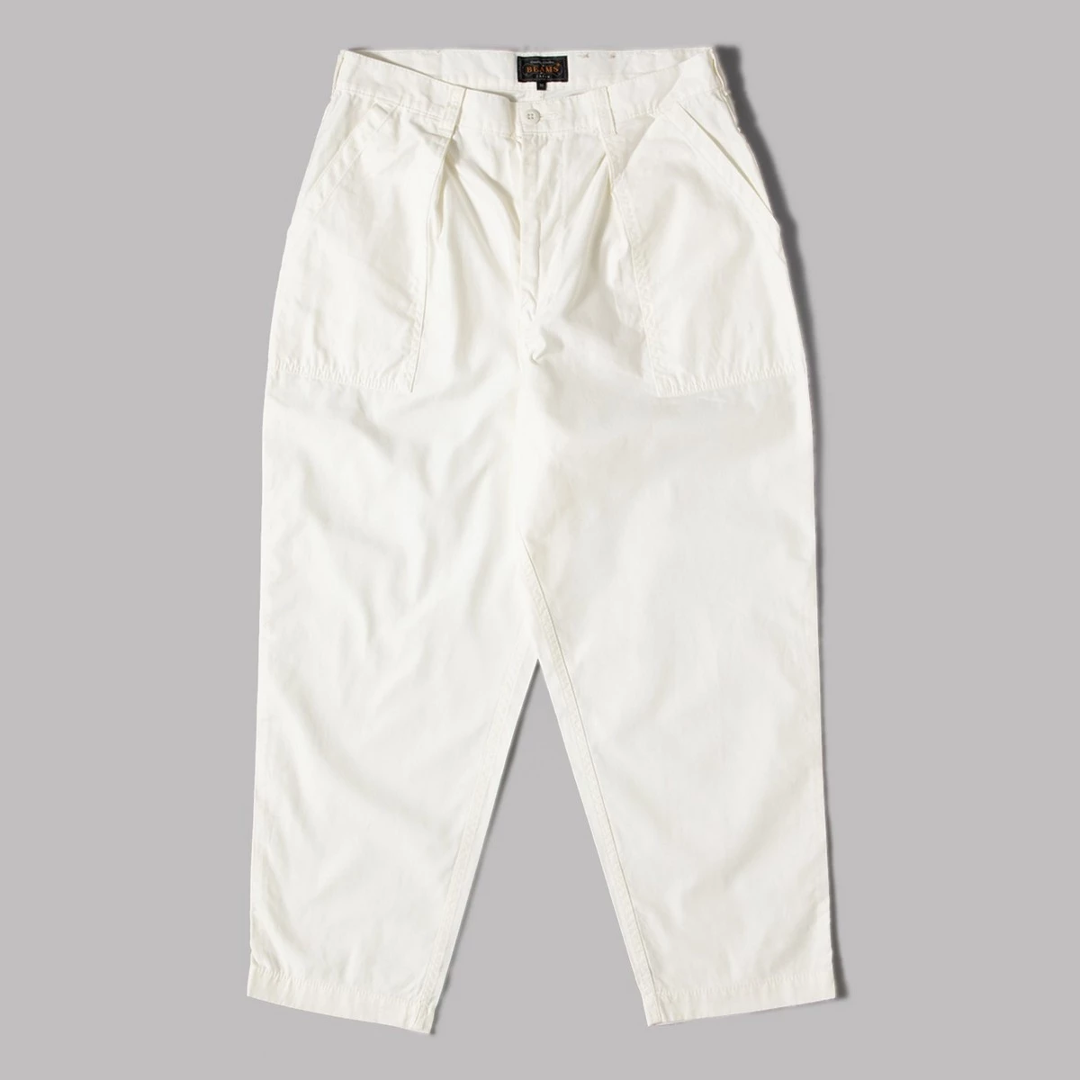 These magnanimous specimens are the 1Pleat Baker 80/3 Back Satin Trousers from Beams Plus. A prime pair of toil trousers, these have got those fatigue-style square pockets, hard-wearing cotton twill and useful waist cinches that all add to the workwear seasoning. The crisp white hue is quite the treat as well just be careful with the ketchup around these.