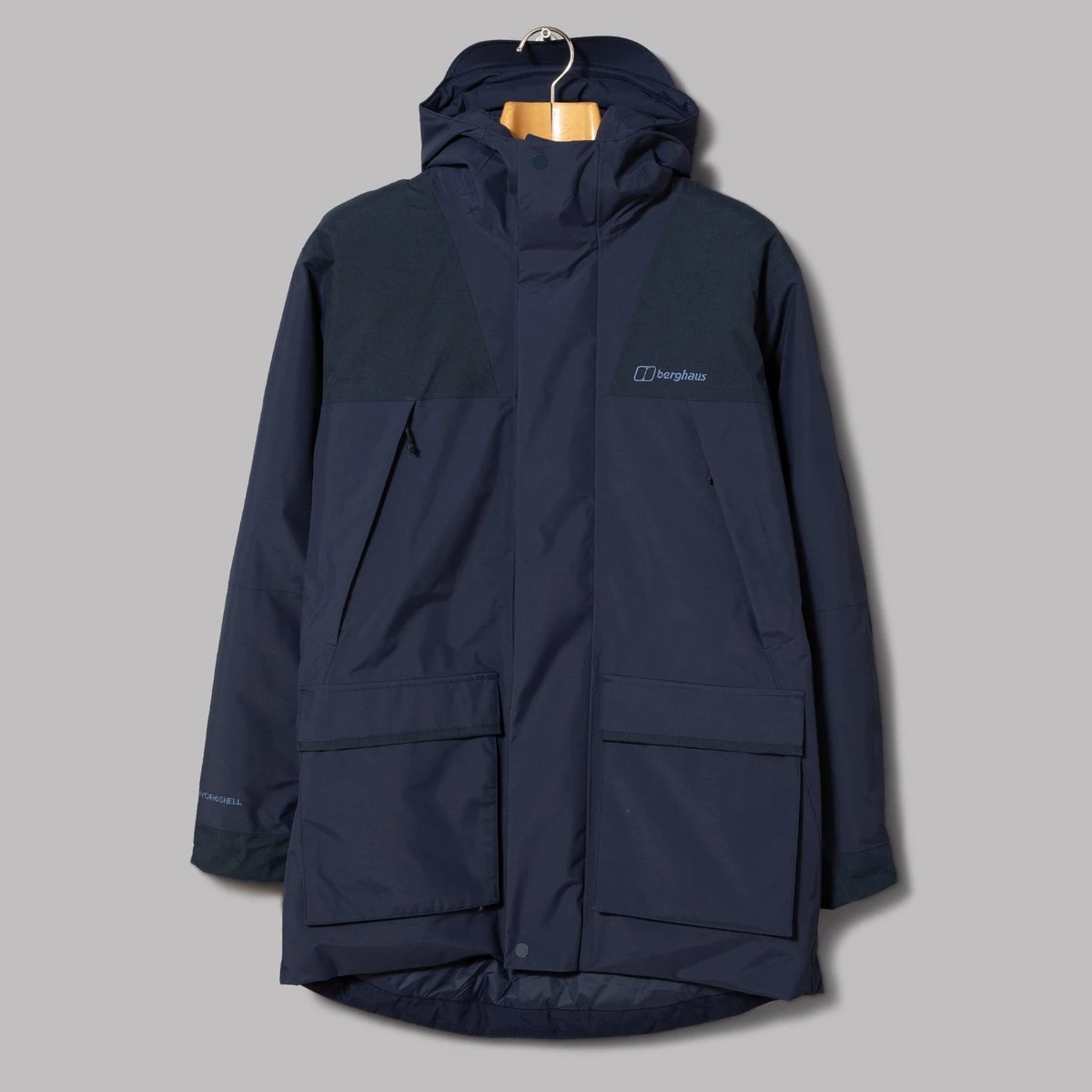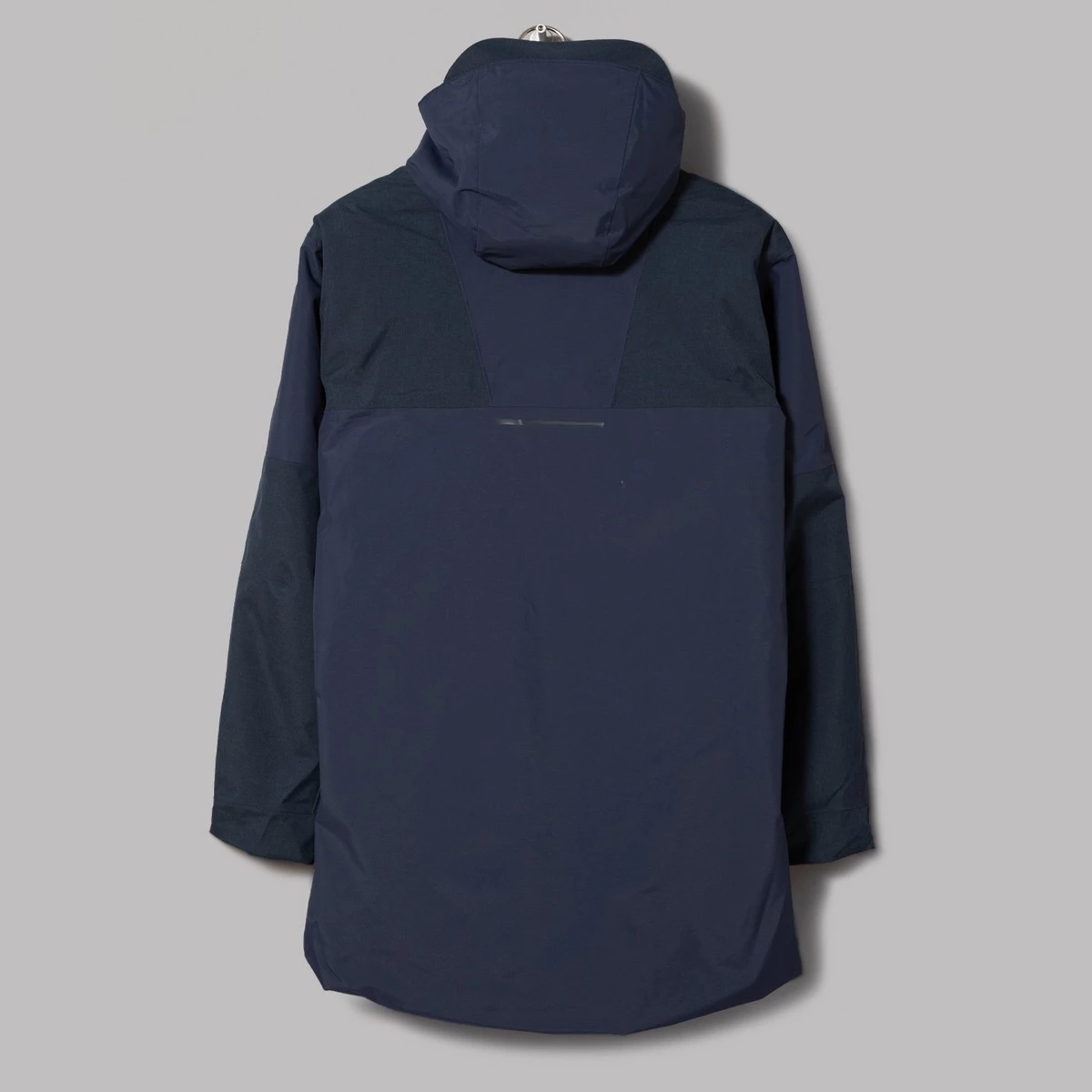Polyamide outer. 100% polyester insulation. Articulated sleeves. Full zip fastening with press stud storm flap. Drawcord peaked hood. Two front patch pockets with flap closure and press stud fastening. Two handwarmer pockets. One internal pocket. Regular fit