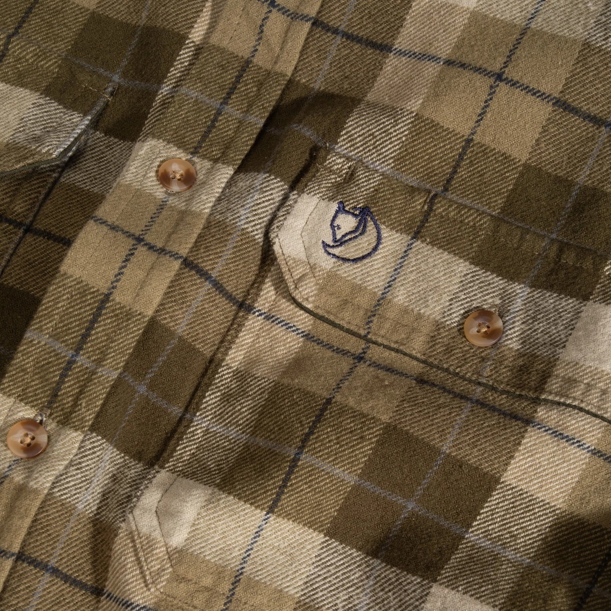 100% cotton. Brushed flannel fabric. Full button fastening. Two chest pockets with buttoned closure. Embroidered brand patch. Regular fit. FjõllrõvenÆs Heavy Flannel Shirt is, as itÆs moniker implies, a shirt made from the plushest brushed cotton flannel fabric known the man, and has a dose of lumberjack flavour for good measure. Great for any logging, chipping and felling youÆve got on the agenda.