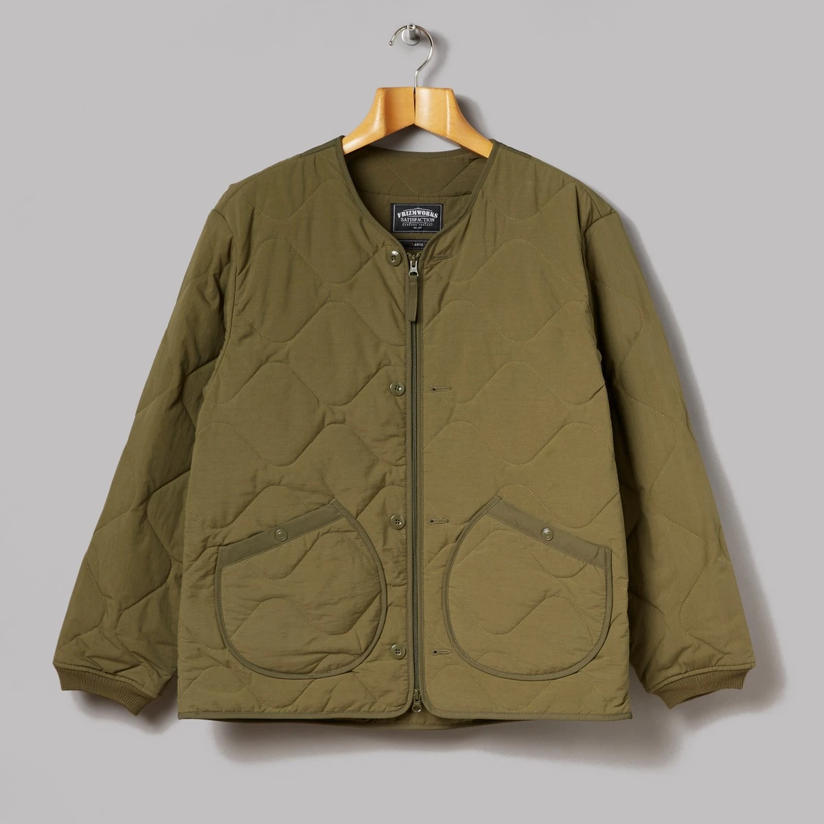 70% cotton, 30% nylon. Twill fabric. Dual zip fastening with auxiliary button fastening. Two patch pockets with press stud fastening. Ribbed cuffs and hem. Regular fit.This slice of military-scented wonderment you’re looking at is the M1965 Field Liner Jacket from Korea’s FrizmWORKS. Unsurprisingly taking inspiration from mid-century military tackle, this is a low-profile jacket designed to slip under bulkier garb when the weather gets biblical (or you find yourself flying jet planes at high altitudes). Those circular pockets are pretty eye-catching too.