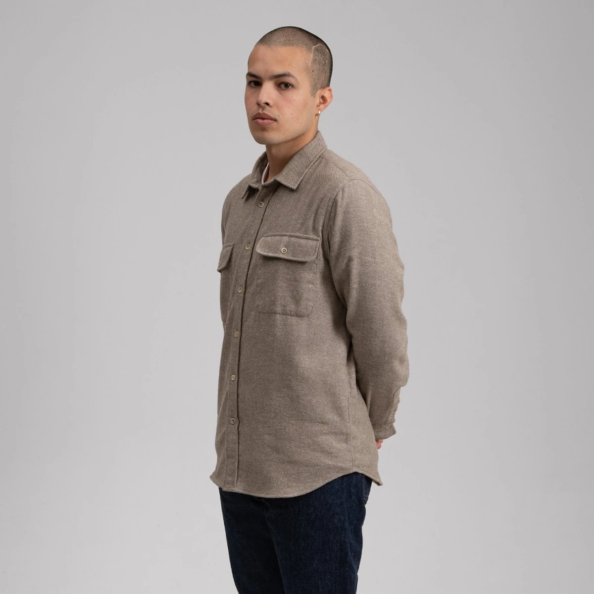 100% cotton. Twill fabric. Full button fastening. Two chest pockets with buttoned chest flaps. Buttoned cuffs. Curved hem. Made in Portugal. Regular fit.