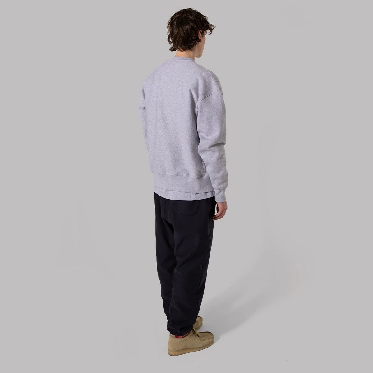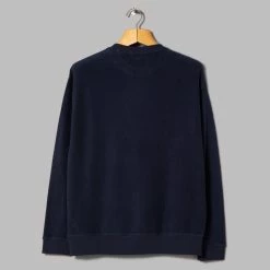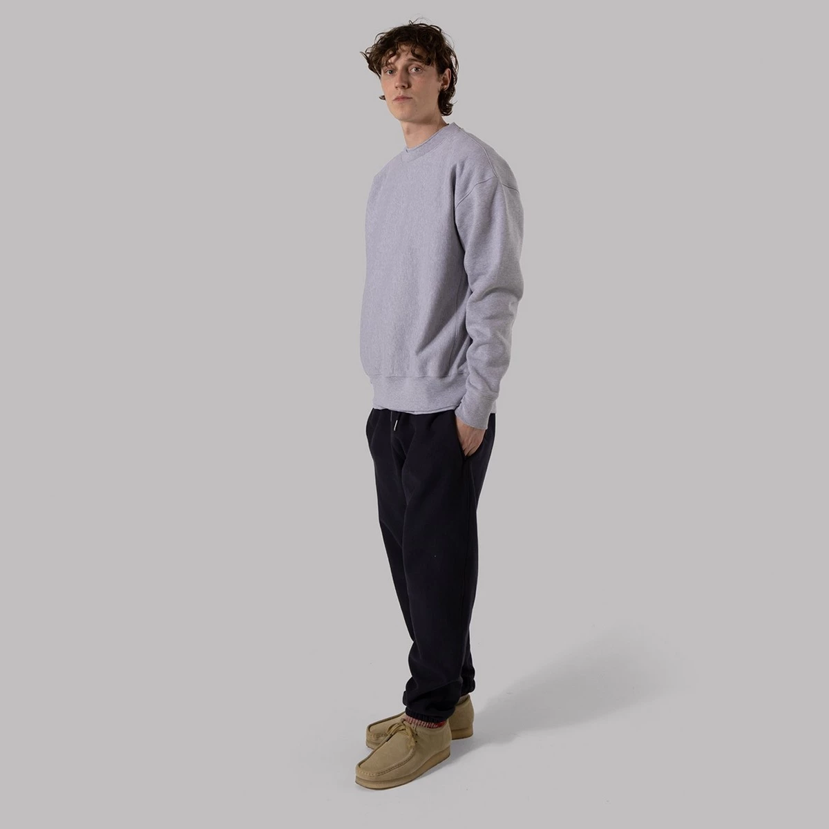 100% organic cotton. Heavyweight fleeceback fabric. Ribbed collar, cuffs, side panels and hem. Made in Portugal. Regular fit. This is the humbly-titled Crew Neck Sweat. We opted to concoct this out of stout jersey cotton, which gives it a taste-bud-tingling, old-world sportswear flavour conspicuously absent from most modern garb. We’re pretty proud of the shape too – boxy but by no means baggy, this is the way sweatshirts should fit. Just a quick aside to let you know that these may shrink a bit after their first wash, so it’s worth sizing up, but it should retain its shape after a hang-dry and a good iron. Probably not a wise idea to blast these on a 60 wash though – we recommend 30 at the absolute most.