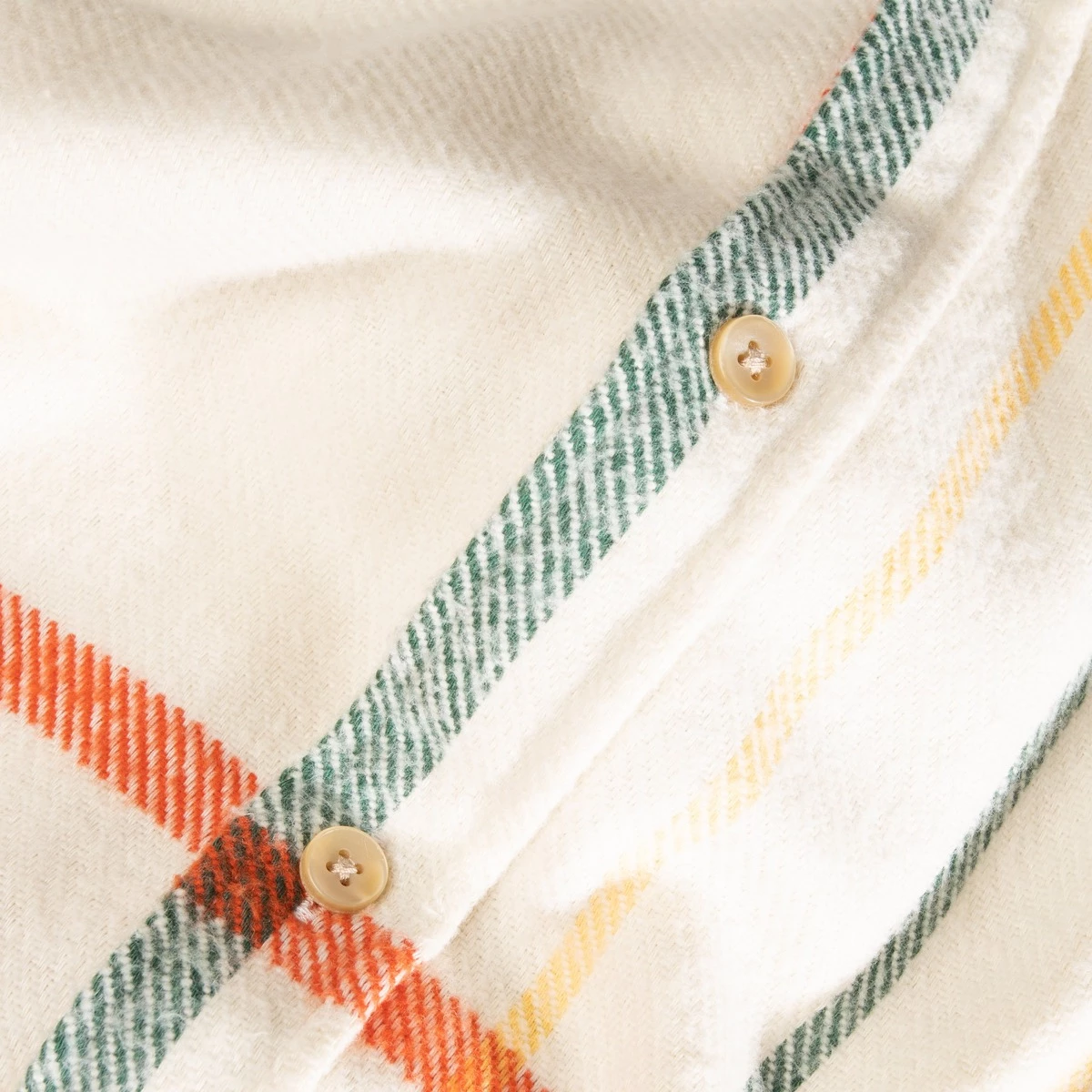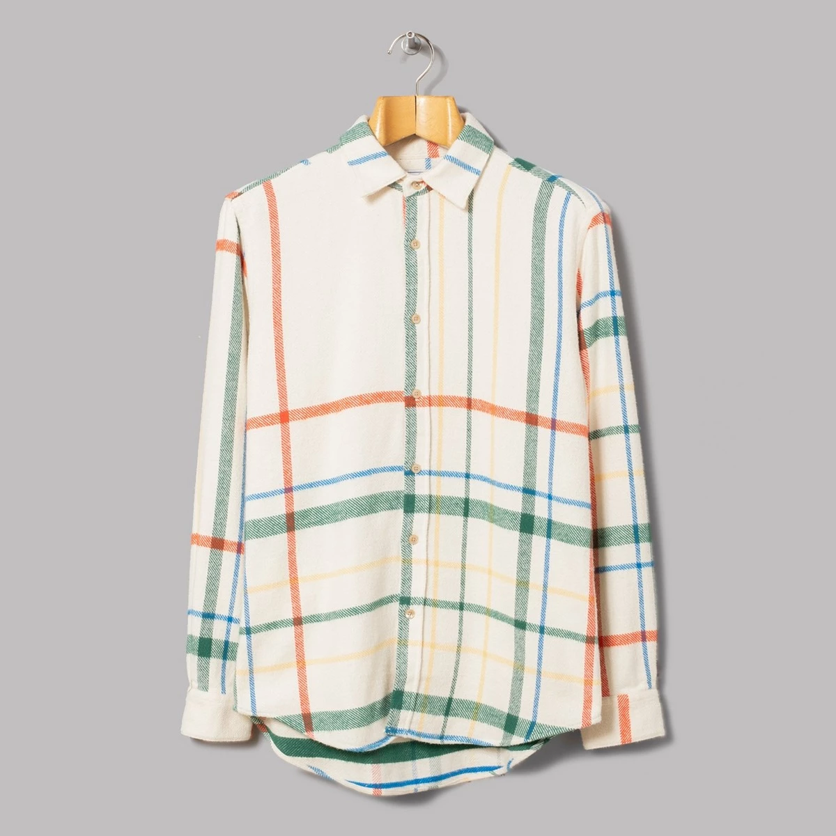 Portuguese Flannel have done it again and by it we mean make the best proverbial slabs of stout and substantial shirting thats ever heralded from Southern Europe. OK, thats enough melodrama for one day, but theyre certainly very good and the brushed blanket flannel fabric that this Misaligned Check Shirt is made from is not to be passed up on.