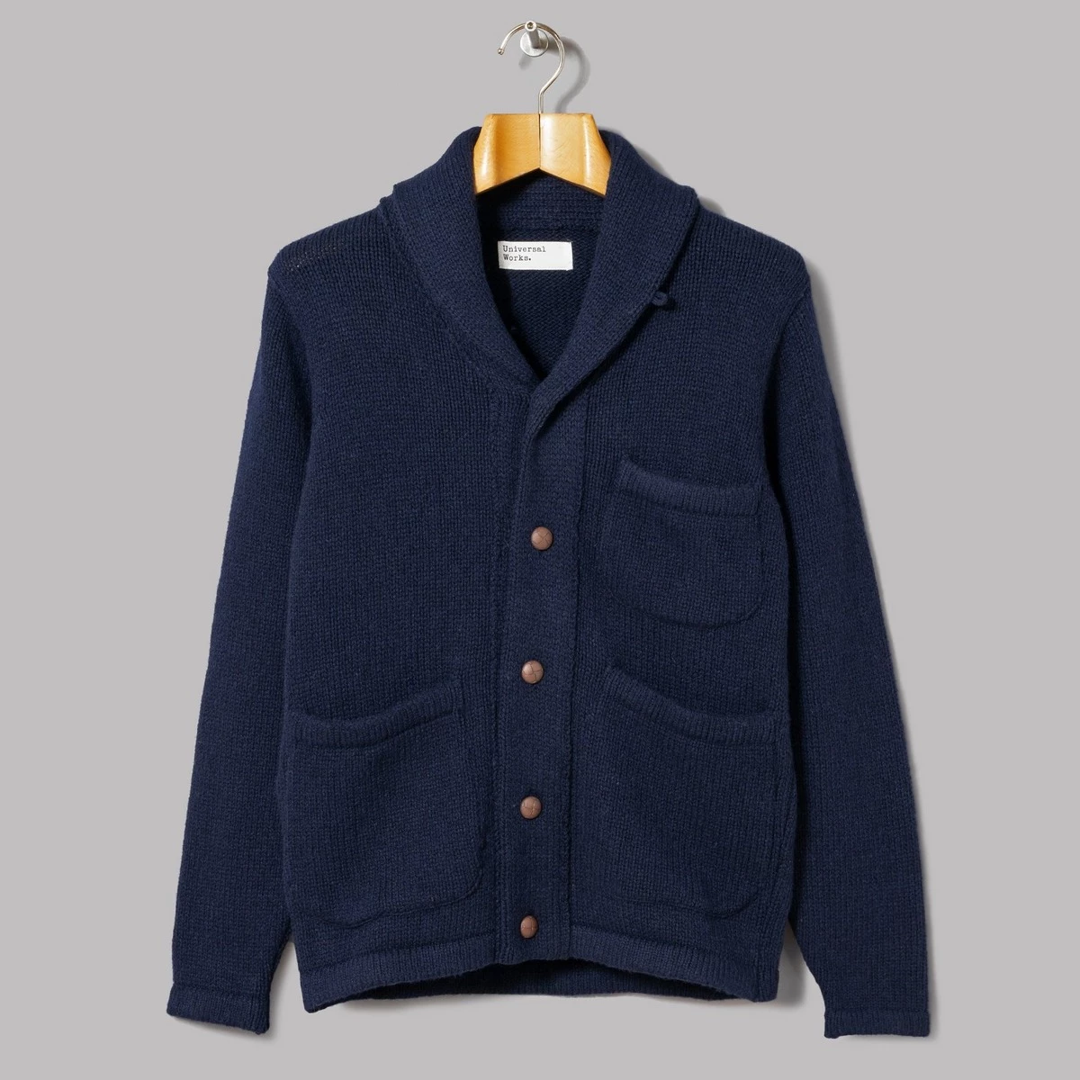 81% wool, 15% polyamide, 4% other fibres. Wool-blend knit fabric. Full button fastening. Shawl collar. Chest patch pocket. Two front patch pockets. Regular fit. Made in Portugal. The Colvin Jacket is one really special inclusion to Universal Works cold-weather cache, and were about to tell you why. With its densely-woven knit and sophisticated shawl nape-scape, this one calls to mind suppin a cup of Joe on your lake house porch amidst a snow flurry somewhere in Montana, and thanks to those generous slabs of pockets, you can ensure you have a fair few biccies at all times too. Cant want for much more than that.