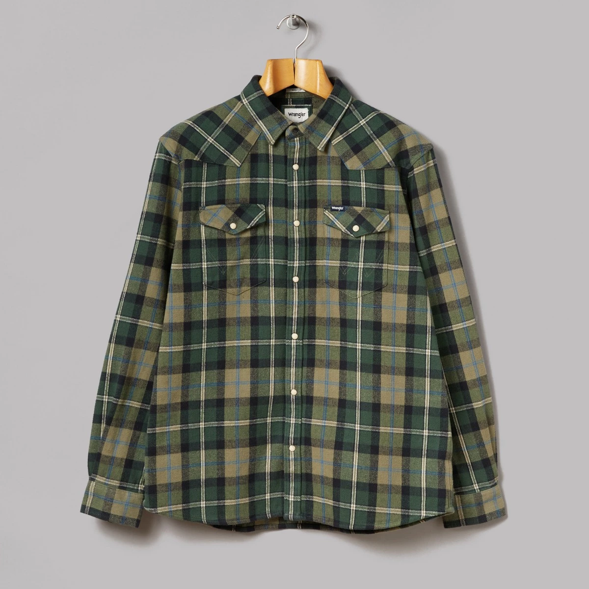 100% cotton. Heavyweight brushed cotton fabric. Full press stud fastening. Two chest pockets with press stud flaps. Press stud cuffs. Curved hem. Regular fit. Here is Wrangler’s tried-and-tested Western shirt that’s been a torso-mainstay with all manner of cowboys, rockstars, hustlers and grifters since its debut. Not much has changed, with Wrangler still using the same ‘broken twill’ (the process of weaving the fabric neither entirely left nor right, but alternating between the two) denim fabric as they did all the way back in ‘64.